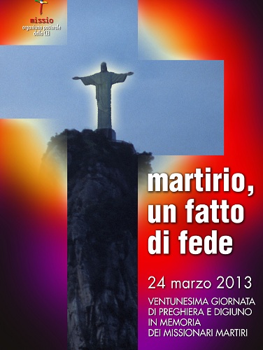 Presentando la giornata di preghiera e digiuno per i missionari e le missionarie uccisi durante il loro servizio di evangelizzazione, non possiamo ignorare il dibattito sempre aperto attorno a questo evento: martiri o no? Già di san Massimiliano Kolbe, missionario in Giappone, ucciso dai nazisti nel campo di Auschwitz, ce lo si chiedeva. Secondo Giovanni Paolo II fu ucciso a causa della fede e quindi fu martire. La provocazione, da lasciare agli esperti, suggerisce a noi di rileggere la proposta della giornata alla luce dellanno della fede. Chi si incammina per la via della fede cristiana non può ignorare che la parola di Gesù, che propone amore, condivisione e pace, si scontra comunque con i poteri dominanti e la mentalità prevalente. I primi secoli del cristianesimo furono soprattutto tempi di martirio per masse di credenti i cui nomi ignoriamo. Ricordare i missionari uccisi insieme allenorme numero di quanti per la fede hanno subito e subiscono persecuzione fino alla morte è anche affermare che non cè credere senza dare la vita come Gesù. Lanno della fede ci ripete che essa è autentica se si mostra allesterno e si spende per gli altri, anche se cè un prezzo da pagare.